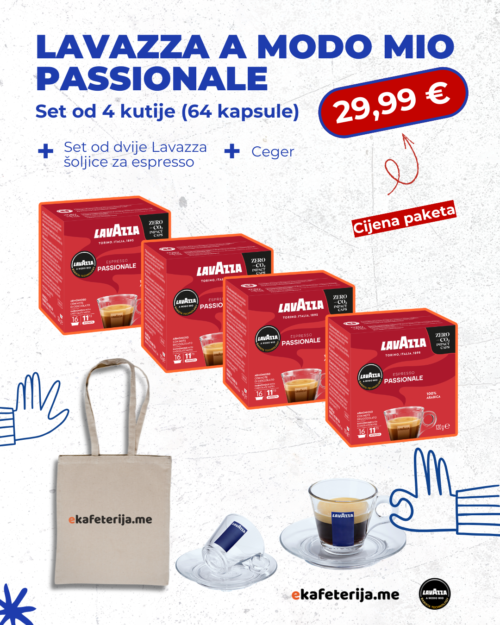 Lavazza Passionale A Modo Mio set od 64 kapsule + 2 šoljice za espresso + ceger Ekafeterija