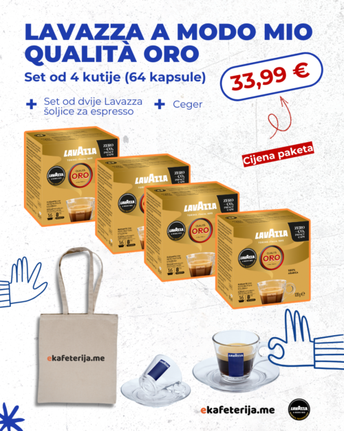 Lavazza Oro A Modo Mio set od 64 kapsule + 2 šoljice za espresso + ceger Ekafeterija
